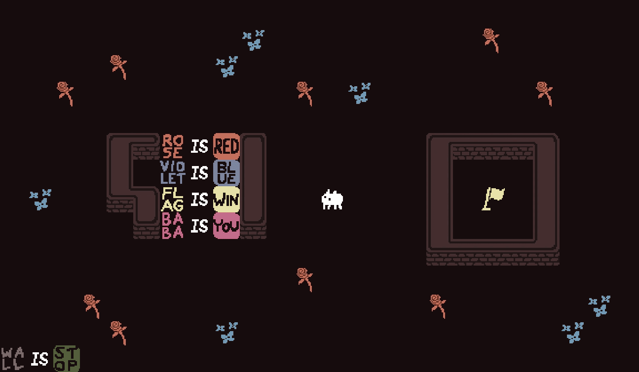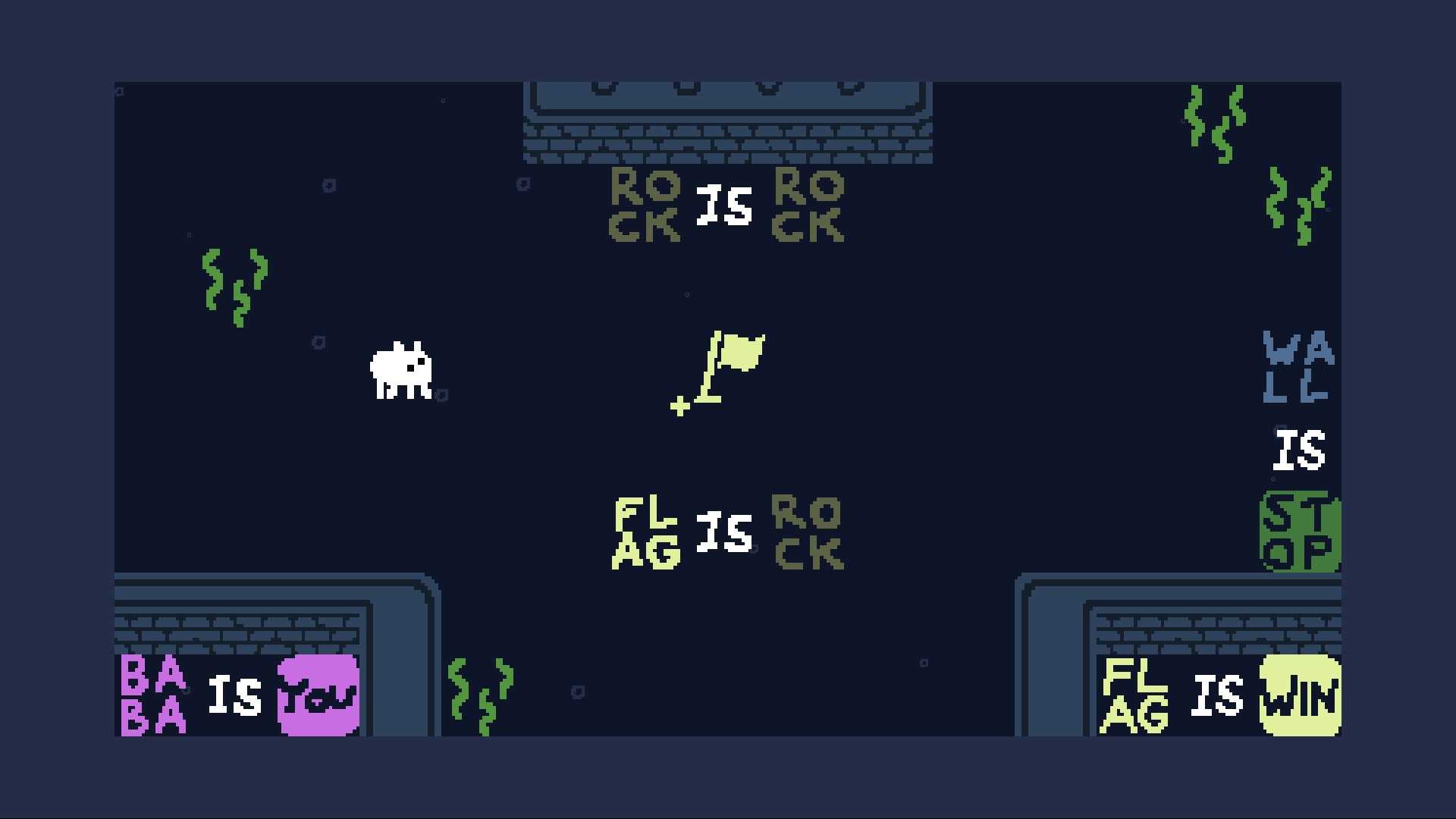 Baba is You is essentially a sokoban game, but instead of crates, you get to move blocks of texts that constitute the rules for the current level, or what those text blocks represent in the game world, i.e. you can push a block of text that says rock as well as an image of a rock on the screen.
